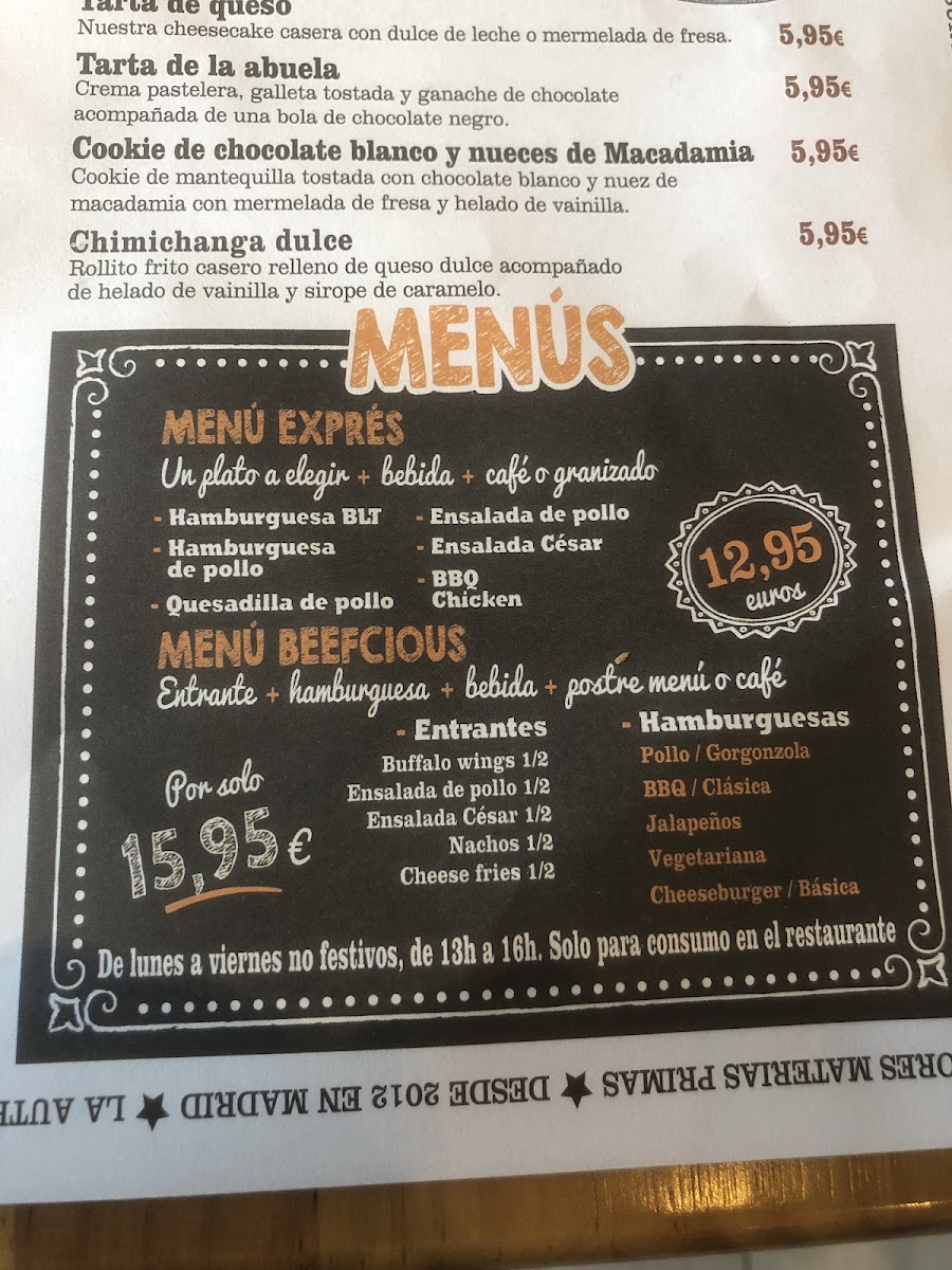 Beefcious Arroyo del Fresno Menu